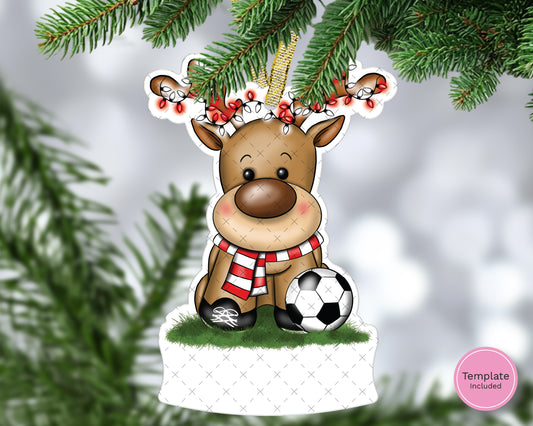Single Sided Gloss MDFFootball Reindeer Hanging Decoration with Name Plaque